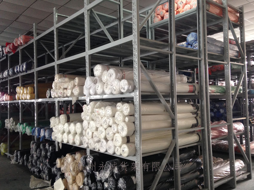 工厂布料仓储货架,服装面料仓布料架,工厂仓库仓储货架根据您布料的长度以及布料的直径来设计仓库仓储货架的层高,因为仓库货架毎层不可能堆放两层布料,一般的布料一卷都有30kg,如果放两层,那人工在搬取时很不方便,因此仓库仓储货架根据布料的直径来设计层高,使用工厂仓库仓储货架可以使仓库的布料分门别类,有序的存入货架,而且货架相应的地方都有标示,这样工作起来十分的方便,提高了工作效率,同时节约人力成本。适用于各种丝绸,窗帘,丝艺等纺织品。